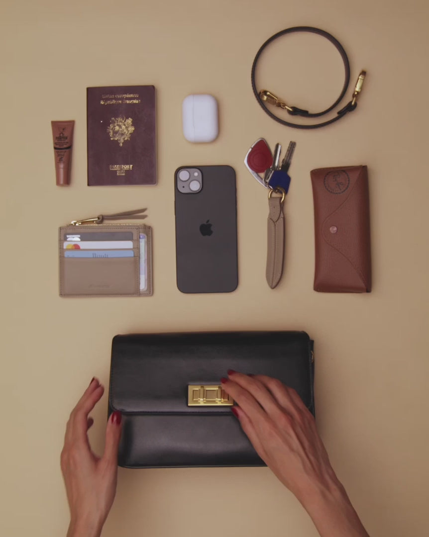 Le Duo bag is constructed with two soft gussets for ample capacity. It comes with two removable shoulder straps for crossbody or shoulder carrying. Custom-made clasp DuoLock™️ in stainless steel with gold PVD finish. Handcrafted in Italy.