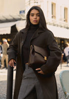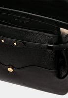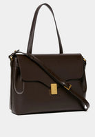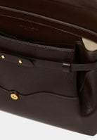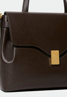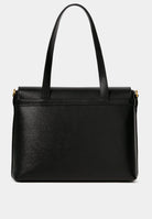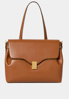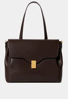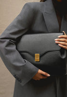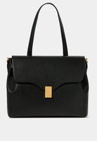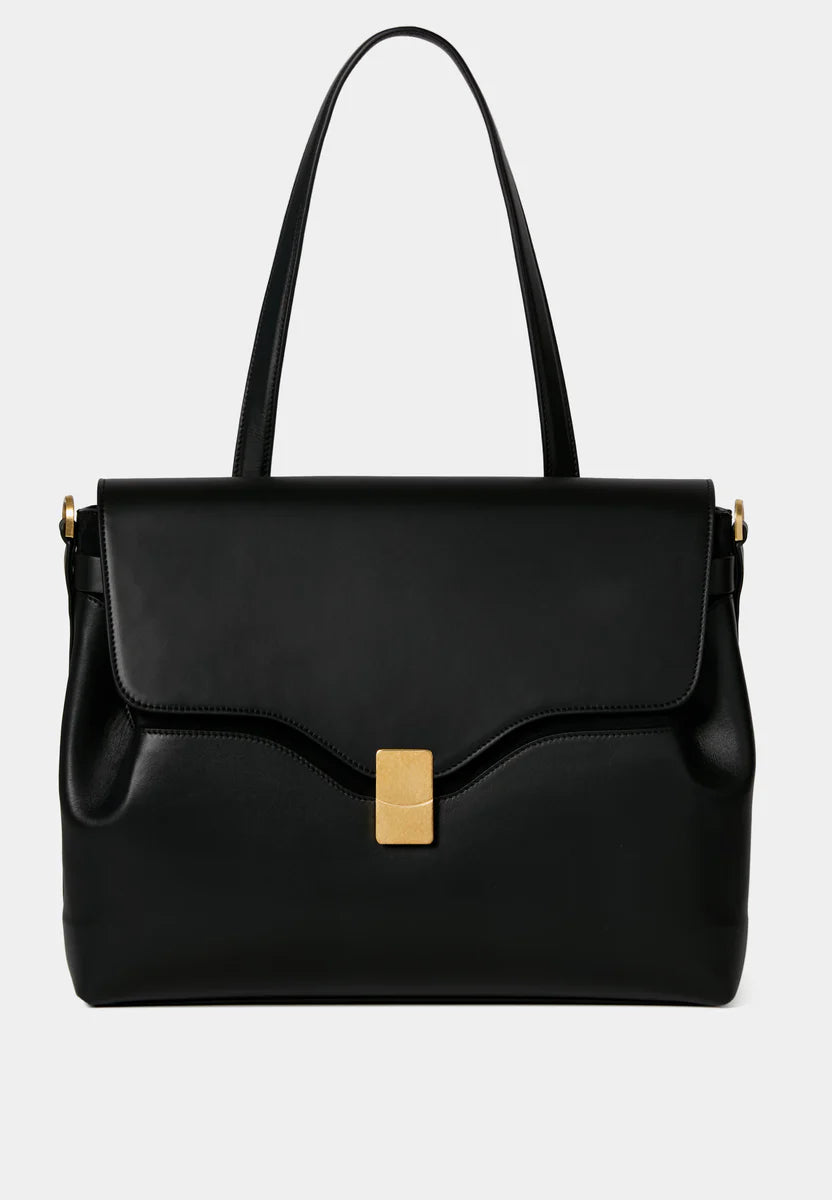 Day bag in textured leather. Full-grain Italian calf leather, LWG Gold certified. Magnetic clasp in stainless steel with a gold PVD finish. Can be carried on the shoulder with its handle or crossbody with the adjustable leather strap. Compatible with A4 format and 13-inch laptops. Made in Italy.